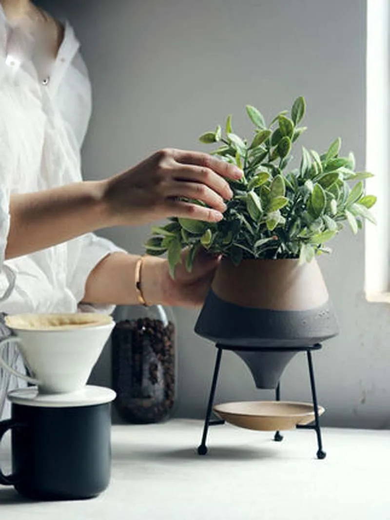 Introducing the Dipped Clay Teardrop Pot with Saucer Stand, the perfect addition to your collection of indoor houseplants. This modern pot and stand set will instantly become the focal point of any room, making it a must-have for people into home d茅cor, interior design, and houseplants.