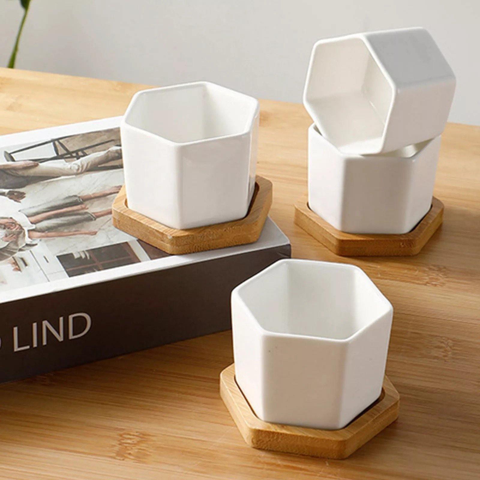 Create a stunning display of small plants and decor with this delightful hexagon ceramic succulent planter! The unique hexagon shape adds a touch of modern style to any space.