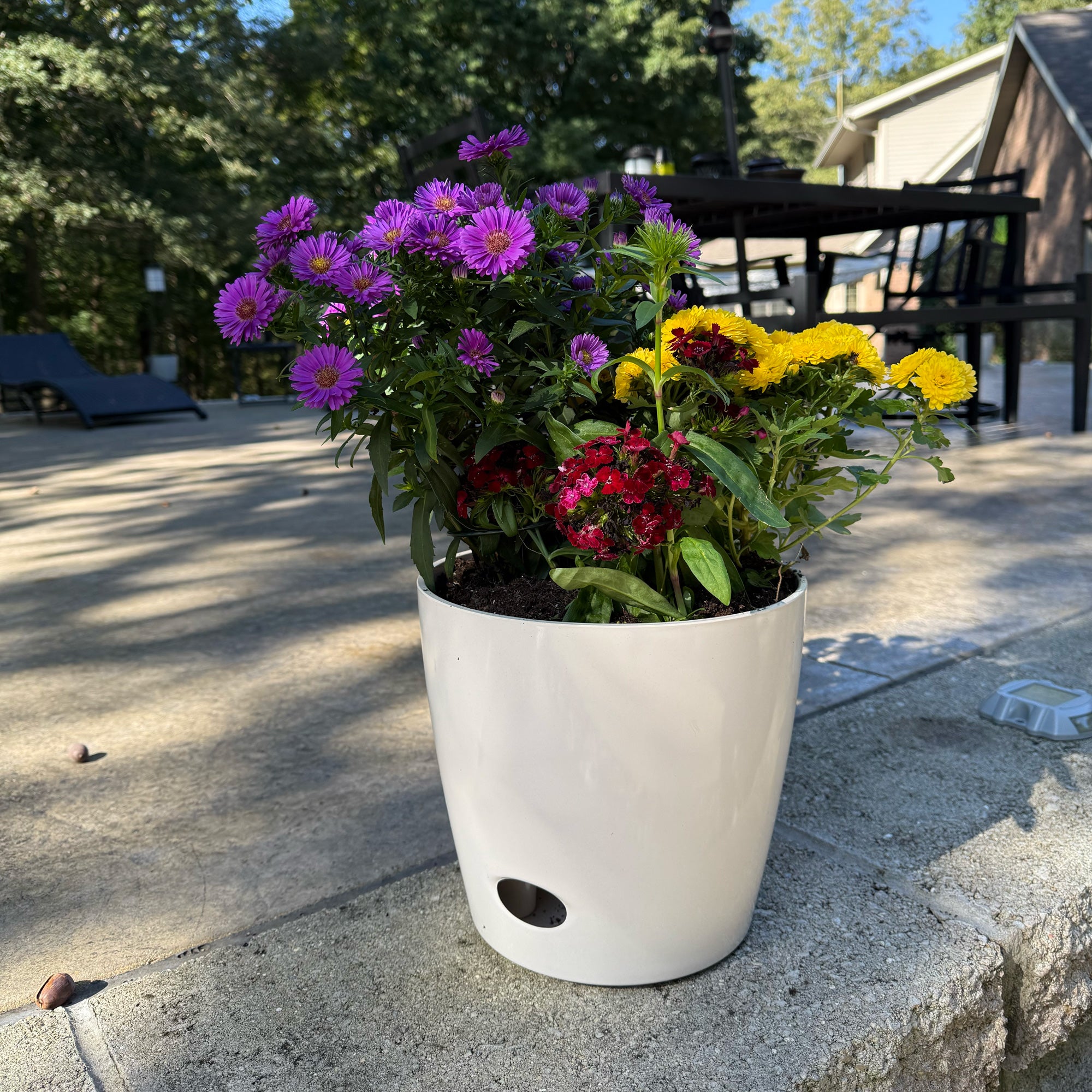 Worlds first Bamboo Fiber self-watering pot this 10" Cream Solid Round self-watering pot is made from sustainable biodegradable all natural Bamboo Fiber and corn starch. Plants thrive in this natural Bamboo Fiber pot that is plastic free. The soil is better aerated by the unique water well in the base allowing better nutrient management helping the plants grow healthy and strong. These pots should be treated like ceramic suitable for use in hot or cold climates inside or outside. At initial planting water from the top until water is just below the overflow. Then periodically check the water level in the base and add water to the well from the bottom access or from the top of the pot. The soil draws water up from the well as needed using capillary action just like a wick. No more overwatering strong healthy plants is the result! Everyone gets a "green thumb" growing in bamboo pots and just by keeping water in the well! When you are finished with your pot just break it up and put into your compost bin. Over time the material will degrade back to nature.